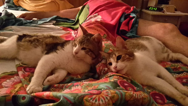Notre second pensionnaire à trois pattes, qui a, lui, été amputé il y a plusieurs semaines, est une preuve très rassurante que la vie d’après l’opération redevient un plaisir. Il est désormais parfaitement adapté à sa nouvelle morphologie. Ici, il est avec Joli Coeur, heureux de vivre, en pleine forme.