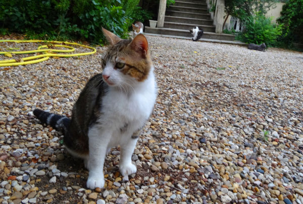 En attendant ce qui devrait être un grand moment, je vais juste vous montrer ce matin quelques photos de Maley, de plus en plus adorable, joueur et câlin. Elles ont été prises hier en fin de journée pendant que nous prenions l’apéro dans le jardin avec quelques-uns des chats de la maison.