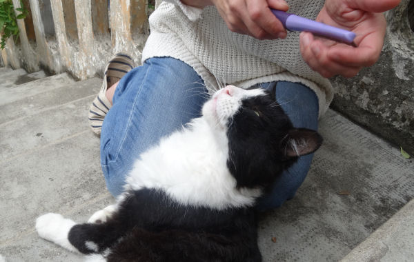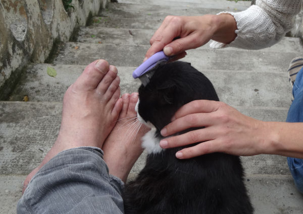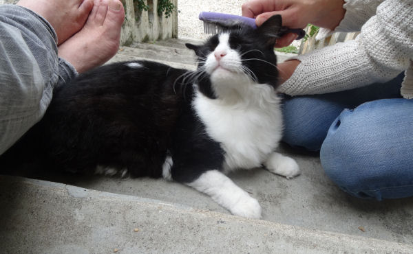 Hier, Will a eu droit à une séance de coiffure à domicile. Nous utilisons des peignes adaptés et leur contact est, de toute évidence, très agréable pour les chats. Voyez plutôt :