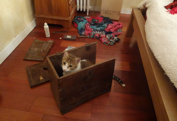 En plus, les tabourets sont très jolis. Même les chats n’en croient pas leurs yeux! Juste un peu petit pour se faufiler. Eventuellement un souriceau.