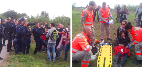 3 – Violences policières, encore et toujours, avec pour seules victimes, encore et toujours, des anticorrida. Une militante âgée de 55 ans a eu la jambe brisée par un coup de pied d’un gendarme hors de lui sans raison sérieuse, et qui a d’ailleurs également donné un coup de poing à un autre militant et a fait voler en arrière une troisième. Tout a été filmé, son matricule a été relevé, des plaintes seront déposées. Ce n’était pas un cas isolé, d’autres brutalités policières injustifiables se sont produites tout au long de la journée. Nous y reviendrons.