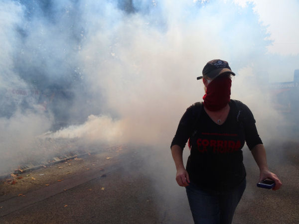 2 – Gazage à gogo, souvent à bout portant, mais qui n’a n’a eu aucun effet sur notre motivation. A chaque fois nous revenions au plus près des barrières et des gendarmes, qui se sont montrés très souvent dépassés par la pression que nous leur imposions.