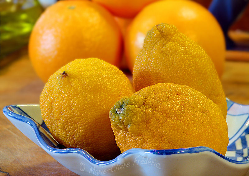 Je connaissais bien son utilisation dans le thé, mais j’ignorais qu’elle l’était aussi en parfumerie (c’est un des ingrédients les plus employés pour l’eau de Cologne), qu’on en faisait des bonbons (bergamotes de Nancy – j’en bave -) et des madeleines (de Commercy – j’en bave aussi -), qu’on en trouve dans le tajine sous forme confite (damned !), dans certaines crèmes solaires et qu’elle est utilisée dans la recherche génétique comme agent mutagène…