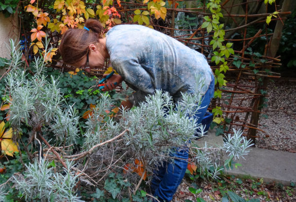 Après manger, elle a poursuivi son repos en ramassant toutes les feuilles mortes et en retaillant les plantes un peu partout dans le jardin. Avec les déchets végétaux, elle a comblé un trou potentiellement dangereux pour les chats à l’arrière de notre terrain entre notre clapas et un mur en béton qui surplombe un terrain trois mètres plus bas – celui où se trouvait une maison devenue inhabitable en bordure du bassin de retenue.
