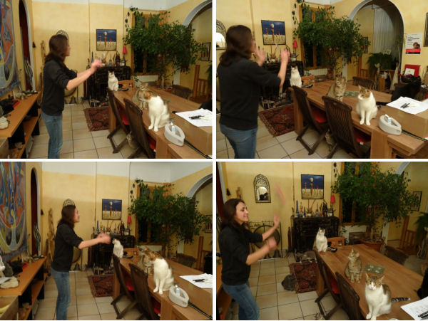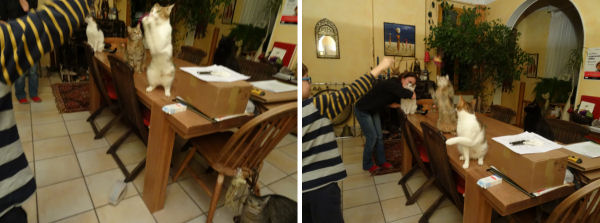 … Anti, encore sous le charme du magnifique film « La famille Bélier » (acteurs extraordinaires, scénario génial, réalisation parfaite) fait répéter notre chorale féline à la baguette…
