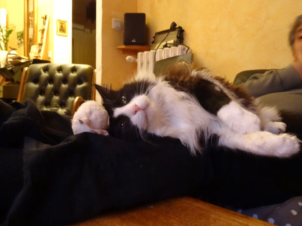 Cette note date du 17 janvier 2016, c’était le premier hiver de Willou-Wouff au chaud. Eh bien, un an après, il assure toujours en bien-être, chat heureux de passer l’hiver dans un cocon d’amour.