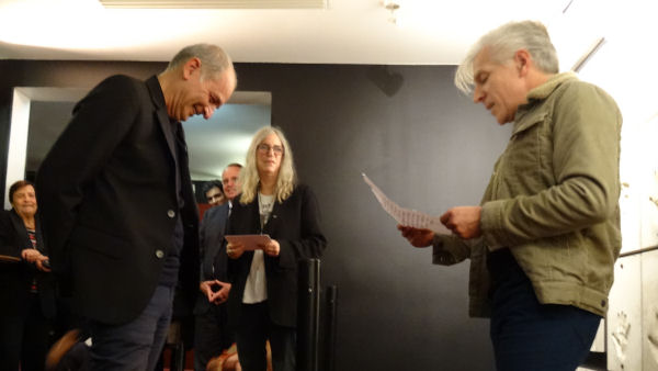 Nous avons eu le grand plaisir de passer un moment hier avec Jérôme Soligny, qui était à Nîmes à l’occasion du Festival de la biographie. Il y dédicaçait deux de ses livres, « Writing on the edge, 25 ans d’écrits rock » et « David Bowie ouvre le chien » (excellent ouvrage que je recommande). Jérôme, nous vous en avions un peu parlé à l’occasion de la cérémonie très rock’n’roll dans les coulisses de l’Olympia, lors de laquelle mon frère est devenu chevalier des Arts et des Lettres en présence entre autres de Patti Smith, Féfé, Giédré et Renaud Donnedieu de Vabres.