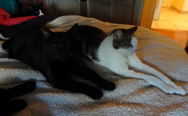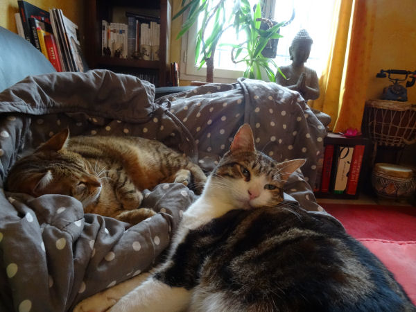 Lorsque nous les voyons, à chaque instant, vaquer à leurs occupations ou dormir un peu partout chez nous, ce bonheur ils nous le rendent par leur seule existence. Merci, chères minettes et chers minous, merci pour tout.