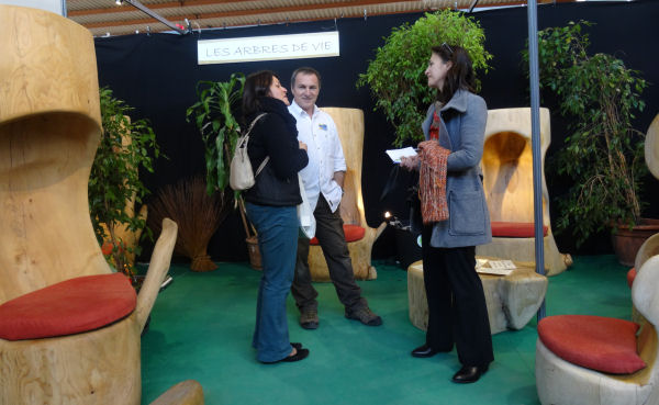Lors de notre visite au salon Sésame dimanche, nous avons découvert le stand d’un sculpteur extraordinaire : il taille des fauteuils dans des troncs d’arbre. Pour dire les choses plus précisément, il les creuse pour en façonner l’assise, ce qui fait que l’on se retrouve à l’intérieur de l’arbre. Le mélange de sensations est étonnant, euphorisant, apaisant, fascinant et bien d’autres qualificatifs encore.