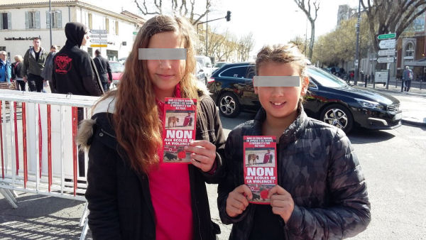 Hier, devant le stand du CRAC Europe que nous avions pu installer à l’entrée du marché d’Arles en plein féria (merci aux autorités préfectorales pour leur autorisation), un petit groupe de très jeunes arlésiennes et arlésiens s’est arrêté pour regarder nos dépliants. Deux fillettes sont restées en arrêt devant nos tracts dénonçant l’existence d’écoles taurines. Rien n’aurait pu plus les scandaliser que de savoir cela : il y avait des écoles pour des enfants comme elles – et en particulier à Arles – qui étaient là pour apprendre à torturer et tuer des animaux. Elles ont tenu à poser devant mon objectif avant de repartir avec leur tract. Cette photo sera l’essentiel de mon mot d’accueil de ce matin, et mon coup de coeur de ce weekend.