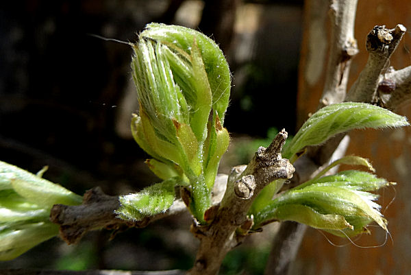 Partout, les plantes ont une superbe allure. Le petit pied de lilas, resté pendant des mois sous la forme d’une tige maigrichonne dont on ne savait pas trop si elle était encore vivante ou pas, a sorti des belles pousses.