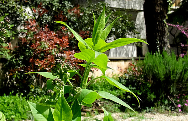 Pareil pour notre glycine, encore modeste, mais qui semble prête à partir à l’assaut de l’escalier. Les arbres de Judée sont en fleurs, les micocouliers épaississent leur feuillage, les papillons sont de la fête.