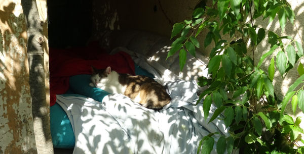 C’est dimanche, on se repose, du moins quand on est chat et pas que dimanche. D’ailleurs, hier, c’était samedi et on se reposait, quand on était chat, aussi bien à l’ombre…
