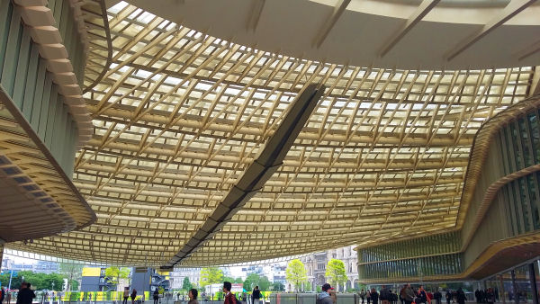 Je suis depuis hier à Paris pour une série de réunions et d’événements sur lesquels je reviendrai un peu plus tard (ou pas). En passant devant le forum des Halles, j’ai pu voir la fameuse canopée qui a fait couler beaucoup d’encre. Il faut bien reconnaître que l’ensemble laisse perplexe. La partie qui s’étend comme suspendue dans le vide entre deux blocs a une forme plutôt réussie.
