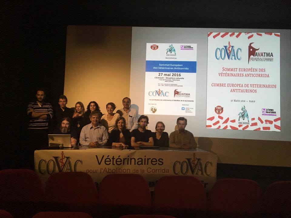 Le premier sommet européen des vétérinaires anticorrida s’est tenu à Paris le 27 mai 2016. Il réunissait des praticiens de l’Asociacion de Veterinarios Abolicionistas de la Tauromaquia et del Maltrato Animal (AVATMA, Espagne) et du Collectif des Vétérinaires pour l’Abolition de la Corrida (COVAC, France), en présence de représentants du PROTEC (Protégeons les enfants des corridas, collectif de psychiatres et de psychologues français), de CAS International (Pays-Bas) et sous l’égide du CRAC Europe pour la protection de l’Enfance (France), de la plateforme La Tortura No Es Cultura (Espagne), d’ANIMAL (Portugal), d’Animal Guardians (USA) et du Réseau International Antitauromachie.