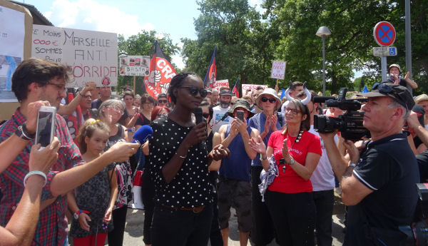 Le rappeur Res Turner, très engagé de longue date dans la cause anticorrida, a galvanisé les militants en leur faisant scander « Ouvrons les consciences, stoppons la corrida ».