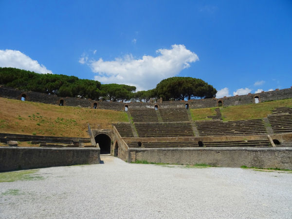 Le troisième jour, nous sommes allés visiter les ruines de Pompéi. Inimaginable tellement c’est gigantesque : 66 hectares de rues, de maisons, de bâtiments divers, de places, de recoins, de peintures murales, de mosaïques, de fresques, de statues, d’allées arborées, de vignes, de thermes, de théâtres, de troquets, de boulangeries, de jardins, sans oublier l’immense arène et cette sensation qu’on pourrait presque voir déambuler, travailler, rire, aimer, commercer, vivre les 20 000 personnes qui habitaient là, tellement tout a été figé d’un coup.