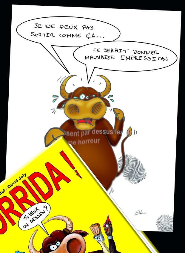 C’est une longue histoire, que je vais tâcher de vous résumer en quelques mots. Stéphanie, David et moi (l’éditrice) avons travaillé d’arrache-pied pendant des mois pour réaliser ce livre plein de promesses. Nous avons mené la campagne Ulule avec succès, grâce à votre soutien. Afin de pouvoir sortir un livre magnifique, avec une belle couverture cartonnée, façon vraie BD, pour une fois, j’ai changé d’imprimeur, le mien étant beaucoup plus cher, ce qui remettait l’existence même du projet en cause. Nous voilà donc partis avec un imprimeur espagnol qui nous a menés de déconvenue en déconvenue pendant des semaines (je vous passe les détails, j’aurai l’occasion de vous en reparler dans un article dédié à mon expérience catastrophique avec Ulzama Imprimerie un peu plus tard) et nous avons atteint le fond du gouffre hier, en recevant – enfin – les livres. Ah ça, pour ça, la couverture est belle (elle a été réalisée par un sous-traitant), mais pour le reste, l’intérieur est une catastrophe qui ne répond pas du tout au bon à tirer qui avait été validé il y a un mois, le 18 mai dernier. Cet imprimeur aurait voulu saboter notre projet qu’il ne s’y serait pas pris autrement… le fait qu’il soit situé à 5 km de Pampelune, ville bien connue pour ses fêtes taurines, serait en lien avec nos déboires ? On peut se poser la question, même si nous n’aurons jamais la réponse.