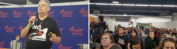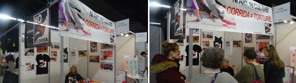 Les organisateurs m’ont appris qu’il s’agissait d’une grande première. Certes, plusieurs associations animalistes y viennent régulièrement (L214, la fondation Bardot, etc.) mais jamais jusque-là une asso spécifiquement anticorrida. Du coup, ils m’ont aussi proposer de faire une conférence de 45 mn sur les dessous de la tauromachie, ce que j’ai accepté avec joie. Cela s’est très bien passé, avec une salle pleine et de très bonnes réactions de l’audience.
