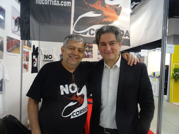 Je suis actuellement à Paris, retour à Nîmes lundi matin et – c’est rarissime – j’y suis sans Anti ni Enzo. La raison en est simple : si je suis là, c’est pour tenir un stand avec une collègue militante anticorrida dans l’immense espace Champerret où a lieu le salon Veggie World. Il s’en tient dans d’autres grandes villes autour du monde et j’ai connu pour la première fois celui de Paris à l’occasion de la sortie du livre que j’ai co-écrit avec André-Joseph Bouglione. Ce qui fait que cette année, j’y ai pris un emplacement pour parler des activités de No Corrida.