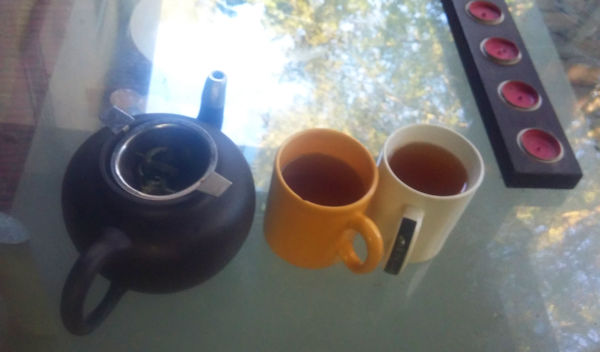 Pendant l’atelier bambous, une petite tisane pour mieux supporter l’air de plus en plus froid :