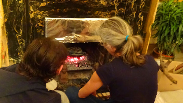 Hier, en fin d’après-midi, le réparateur de la chaudière a pu passer alors qu’il avait prévu de ne venir que ce matin. Cela nous a permis de récupérer notre chauffage avec de l’avance, c’était fort agréable. Pour autant, on a fait du feu toute la journée et donc, le soir, nous avions de la braise. L’occasion idéale de faire enfin cuire nos châtaignes qui étaient là, dans notre cuisine, depuis déjà longtemps. Peut-être un peu trop longtemps, d’ailleurs. On a dû en jeter pas loin de la moitié en triant celles qu’on allait faire cuire, mais peu importe, le plaisir restait intact.