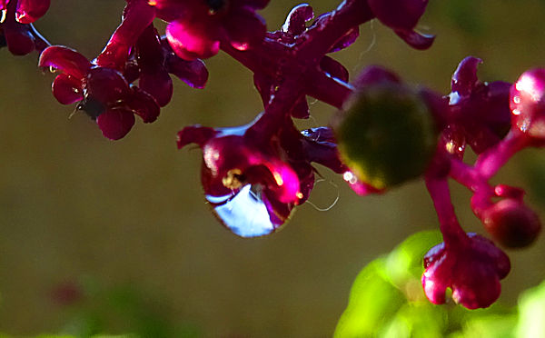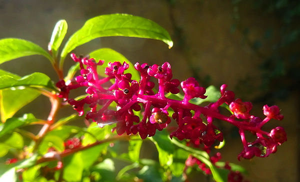 Cela dit, après être allé voir ce qui est en ligne sur les phytolaccas (qui poussent entre autres dans l’Hérault, tout près de chez nous, donc on pourrait bien en avoir ici aussi), j’ai un petit doute. Les baies de la plante qui est dans notre jardin sont beaucoup plus éparses que celles qu’on peut voir sur internet et qui forment des sortes de manchons compacts. Est-ce une variété différente ?