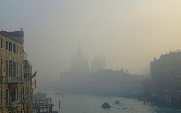Si vous suivez la page Facebook de Stéphanie, vous savez déjà où nous sommes partis pendant quatre jours : rien moins qu’à Venise, en plein quartier San Marco, pour y fêter – entre autres – son anniversaire. Nous avons plein de choses à vous raconter et des photos à vous montrer. Mais pour ce matin, je vais me contenter d’une seule image, prise hier vers 10 h depuis le pont de l’Accademia alors que la brume envahissait la ville, comme pour recréer un tableau de Turner.