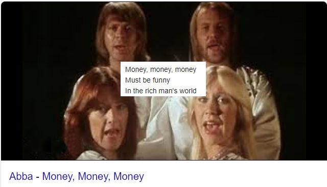 Traduction : l’argent, ça doit être sympa dans le monde des riches.