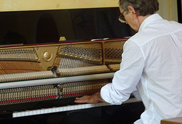 Notre accordeur attitré est revenu hier pour régler à nouveau le piano. Le regarder travailler est toujours aussi fascinant, surtout ce qui chez lui ne bouge pas du tout, le plus important : ses oreilles à la perception parfaite.
