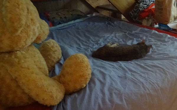 En fait, ils ont sacrément sursauté (et nous aussi) quand la foudre est tombée sur notre maison samedi vers 23 h, dans un craquement assourdissant. Heureusement, quasiment aucun dégât à part la box qui a cramé et que j’ai remplacée lundi matin.