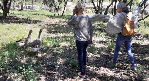 C’est grâce au site Le Bon Coin qu’Anti a fait la connaissance de la dame chez qui nous achetons désormais nos œufs. Elle habite à quelques minutes de chez nous. Derrière sa maison se trouve un bout de garrigue de plus d’un hectare acheté par son père, où batifolent librement une quinzaine de poules, un coq, deux oies et quatre chevaux (dont un poney rescapé d’un cirque).