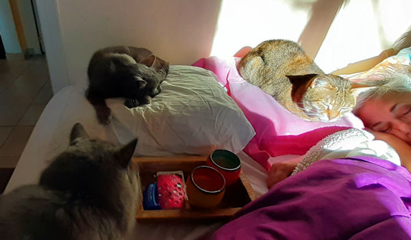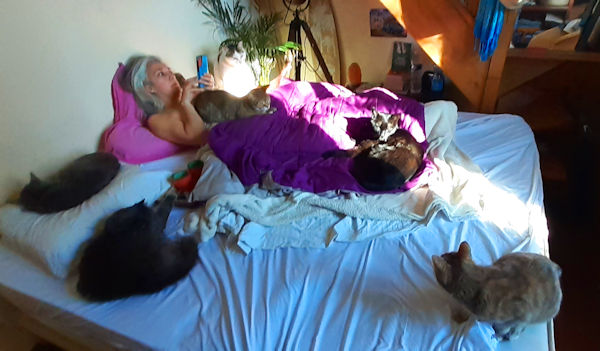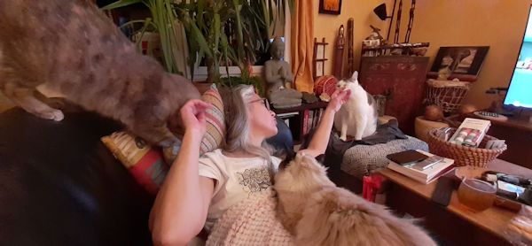 Le retour à notre maison de Nîmes a été plus que chaleureux. Nos minous étaient ravis de nous revoir.