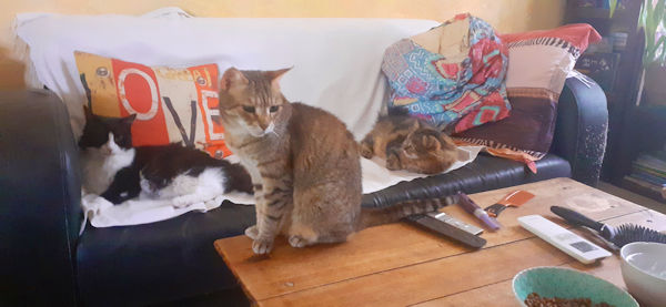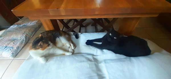 Hier, vers midi, pas le moindre signe d’orage et pas même une goutte de pluie. On s’est rassurés en voyant que nos chats, de toute évidence, sentaient que ça approchaient et se réfugiaient prudemment à l’intérieur.