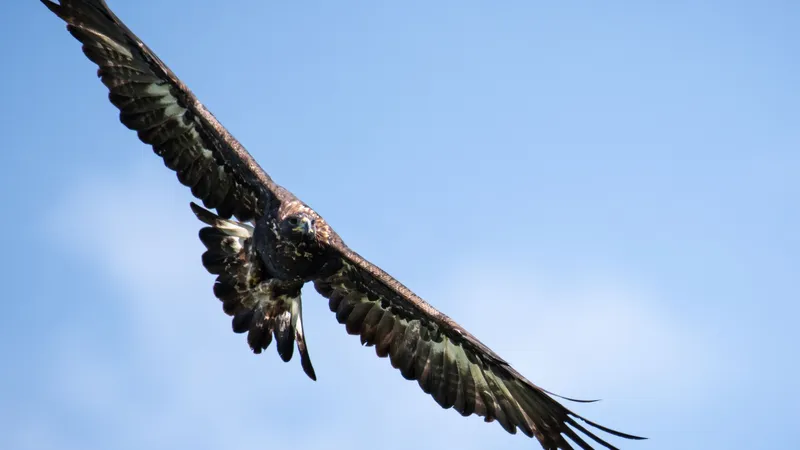 En vol, l’Aigle Royal repart de la zone forestière. • © Kevin Flores