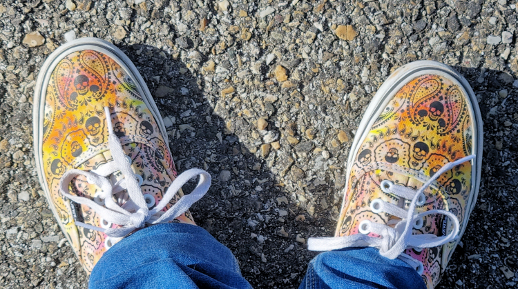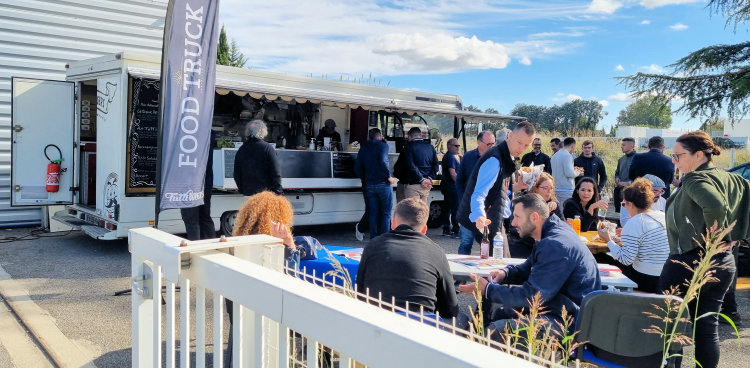 Vous connaissez déjà nos amis Italo et Sonia (la fameuse So la Bête noire à l’humour décapant – tiens ? d’ailleurs, je vais lui consacrer une note :-)) Eh bien ce jour-là, son Tutti Food Truck, habituellement basé à Montpellier, était à Nîmes. Nous n’avons pas hésité une demi-seconde à parcourir les quelques kilomètres qui nous séparaient. Pour cette occasion, j’avais chaussé mes souliers spécial Sonia (elle est fan des têtes de mort).