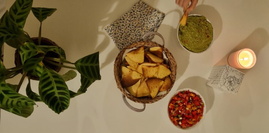 Mercredi soir, nous étions invités chez notre amie Sandrine, en très bonne compagnie, puisqu’il y avait au moins un de nos petits 🙂 Pour l’occasion, elle nous a préparé un menu végétarien mexicain. Aïe ! Aïe ! Aïe ! On s’est régalés ! Voyez plutôt :