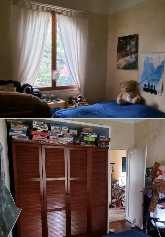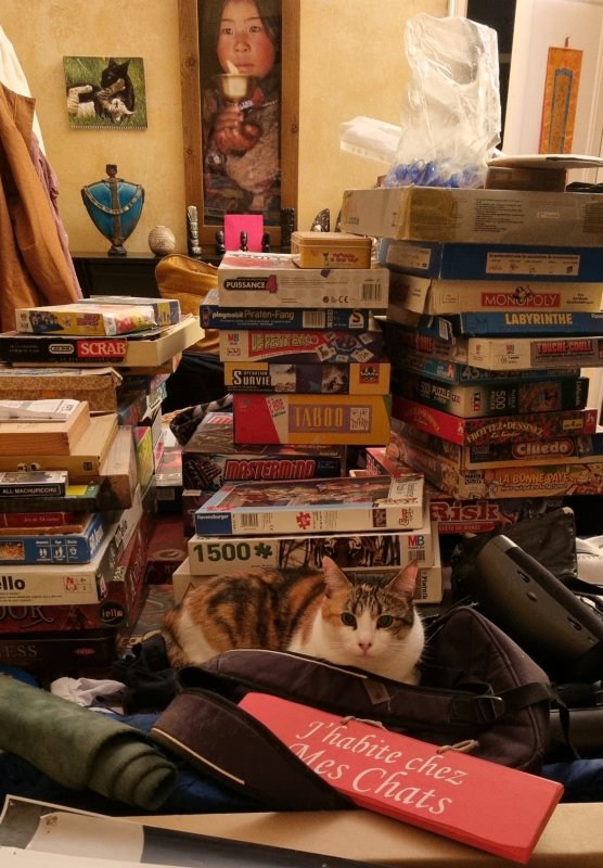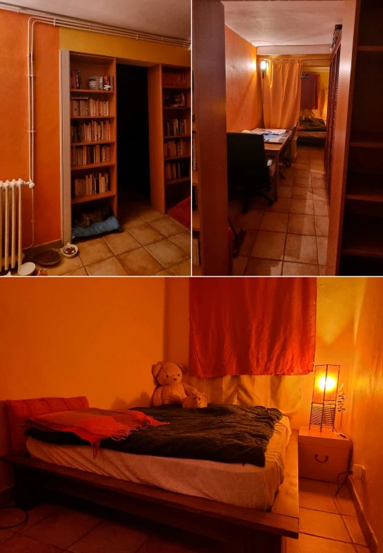 Et hop ! Après de nombreuses heures à monter et descendre les tonnes de trucs des uns et des autres (dont une batterie quand même, une armoire, un lit, etc.), la chambre d’Enzo était prête ! Déjà, Kiki et Lili l’ont adoptée. Enzo devait venir à la maison m’aider ce week-end là, mais il était cas contact donc il est resté à Montpellier (bien joué !) Le Covid n’est pas fini et il convient de rester vigilant.